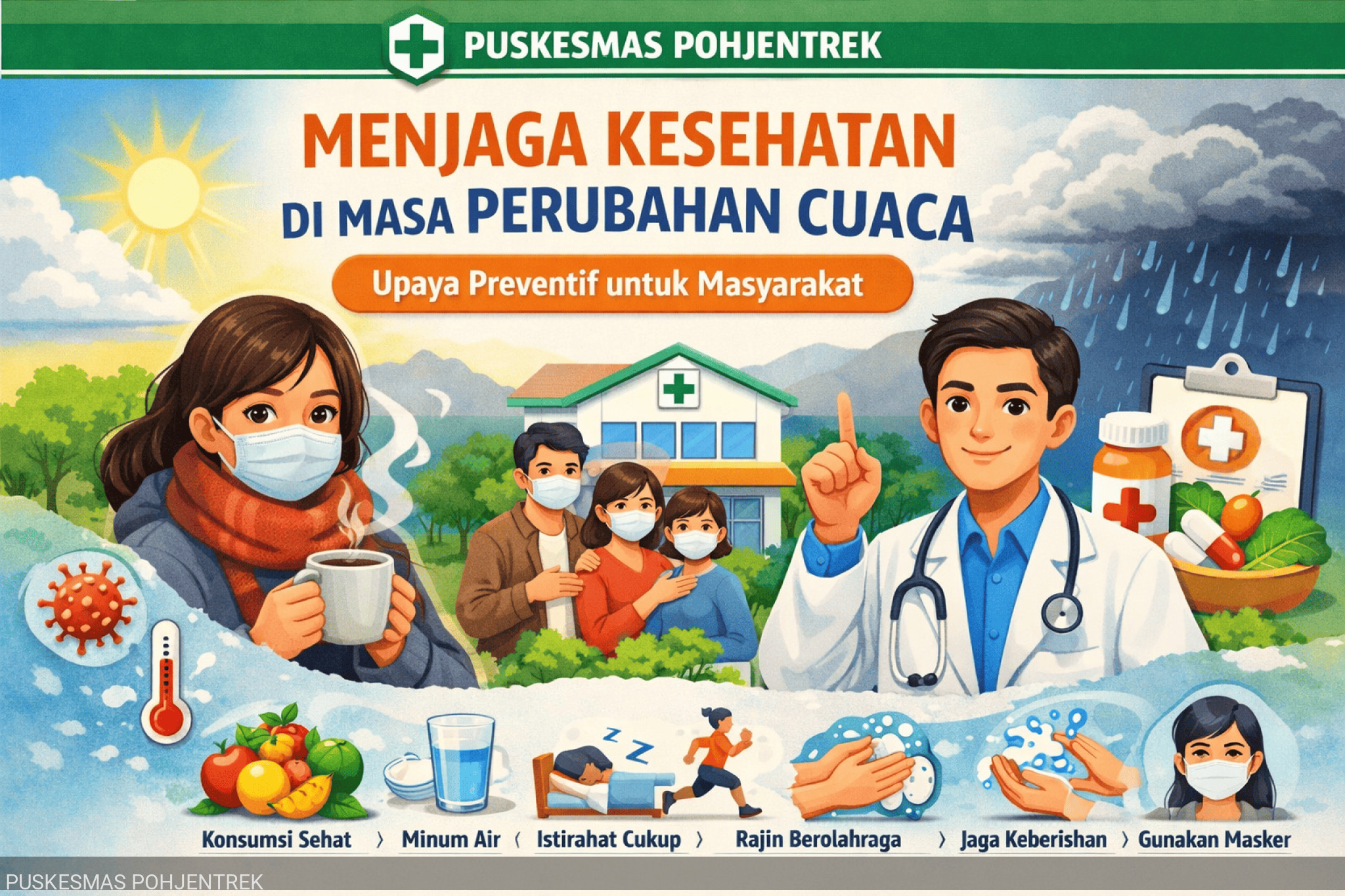 Menjaga kesehatan merupakan tanggung jawab bersama antara tenaga kesehatan dan masyarakat. Dengan meningkatkan kesadaran serta menerapkan perilaku hidup bersih dan sehat, diharapkan masyarakat dapat terhindar dari berbagai penyakit, khususnya pada masa perubahan cuaca.